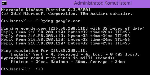 Herhangi bir websitenin ip adresini öğrenmek oldukça kolaydır. Komut İsteminde ping komutunu kullanarak websitenin ip adresini öğrenebilirsiniz.